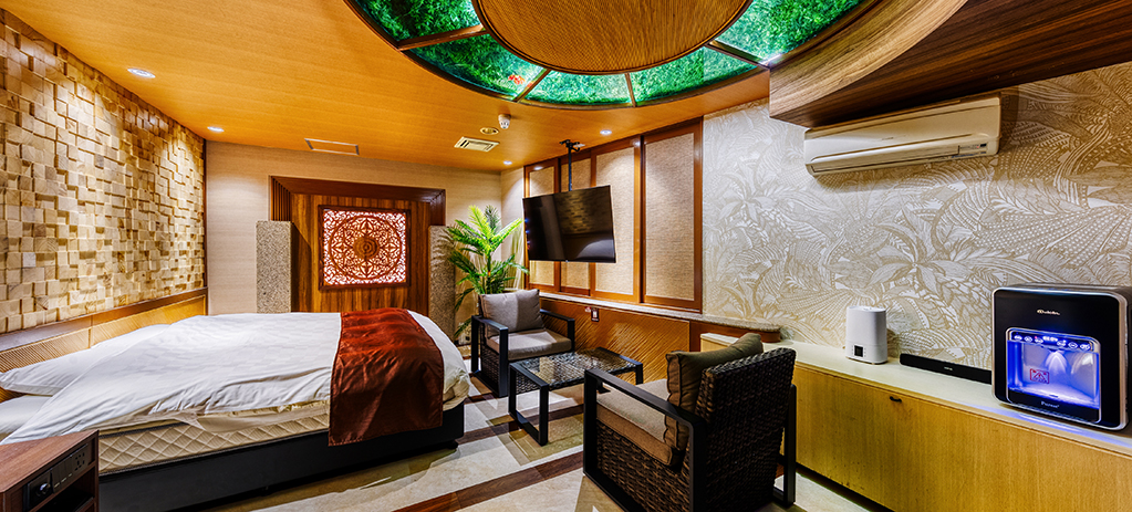 ホテルロータス茨木店は、バリと宇宙をモチーフにした